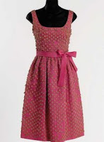 Se trata de un vestido de seda rosa tipo cóctel, adornado con un elegante cinturón y aplicaciones en forma de abanicos. Holly Golightly (Hepburn) aparece con este vestido en una de las escenas más memorables del film, cuando descubre que su hermano ha muerto.