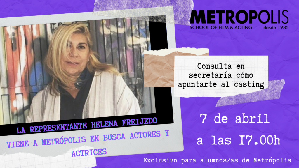 Y ahora viene a la escuela Metrópolis en busca de actores y actrices para su apartado de «caras nuevas». Hemos organizado un casting, que será exclusivo para alumnos/as de la escuela.