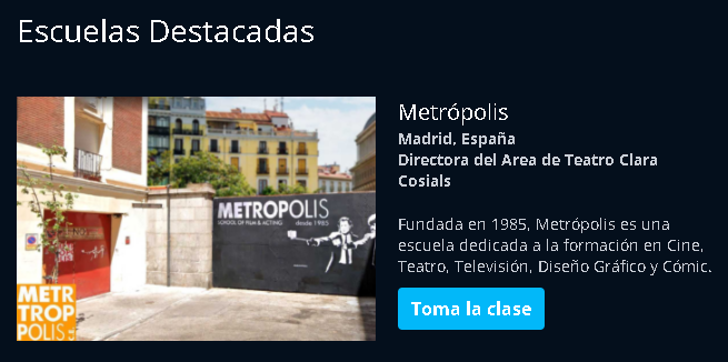 Nos ha hecho una ilusión increíble ver que en el listado está Metrópolis, entre escuelas de renombre compañeras en Madrid y otras en países como México o Argentina.
