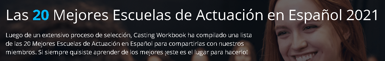 La plataforma Casting Workbook, empresa canadiense que lleva más de 25 años fomentando la comunicación entre producción, casting y talento, a través de un software de última generación, ha lanzado esta semana la lista de las 20 mejores escuelas de actuación en español del mundo del año 2021.